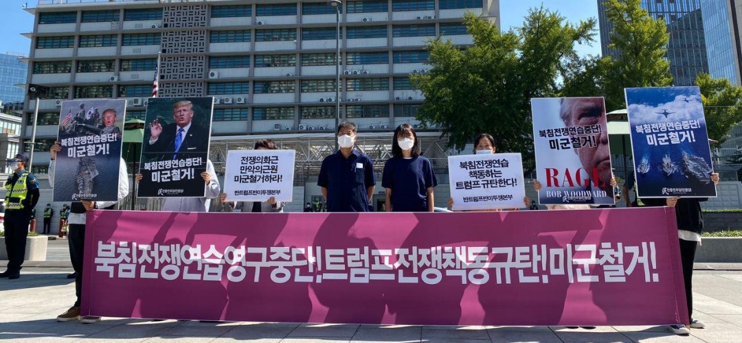 9월평양공동선언2주년인 19일 반미투본(반트럼프반미투쟁본부)은 미대사관앞에서 <북침전쟁연습영구중단!트럼프전쟁책동규탄!미군철거!> 기자회견집회를 열었다.