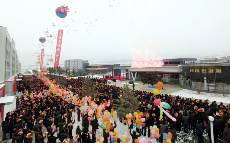 준공식장은 시대를 진감하는 경이적인 결실들과 더불어 보다 행복해질 래일에 대한 확신과 락관에 넘친 군주민들의 크나큰 기쁨과 당의 웅대한 지방발전구상을 줄기찬 로력투쟁과 위훈으로 받들어나가는 군인건설자들의 남다른 긍지로 끝없이 설레이였다.