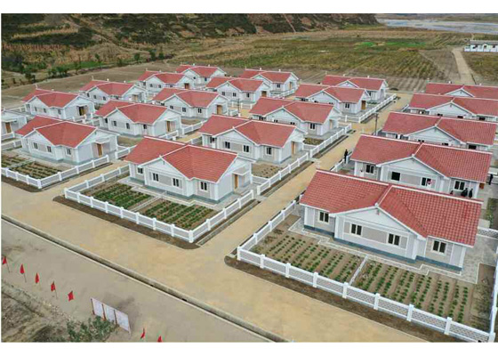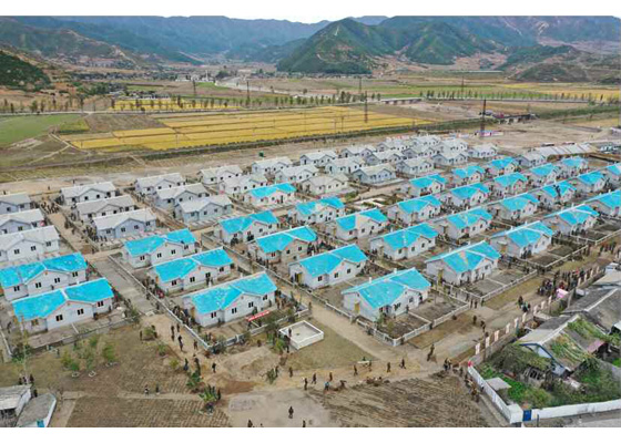 경애하는 최고영도자동지께서는 살림집건설을 지켜보면서 하루하루 크나큰 기대와 희망을 안고 기다리는 피해지역 인민들이 정말 좋아할것이라고, 우리 인민들에게 삶의 새 터전, 행복의 보금자리를 안겨줄 완공의 날을 하루라도 앞당기기 위해 모두가 더욱 분발하고 이악하게 투쟁해나가자고 절절히 호소하시였다.