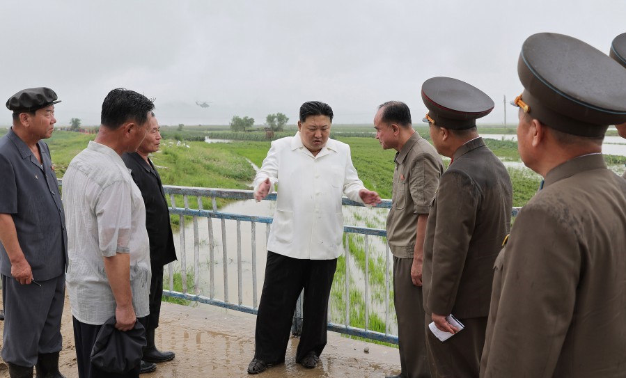 경애하는 김정은동지께서는 현지에 도착하시여 김덕훈동지, 조용원동지, 박정천동지, 리철만동지, 주철규동지로부터 태풍피해정형을 보고받으시였다.