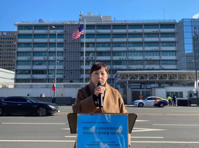 8일 파쇼탄압분쇄윤석열정부퇴진민중행동(반파쇼민중행동)은 미대사관앞에서 논평 <정원스님의 반파쇼투쟁정신으로 친미파쇼광 윤석열을 타도하자!>를 발표했다.