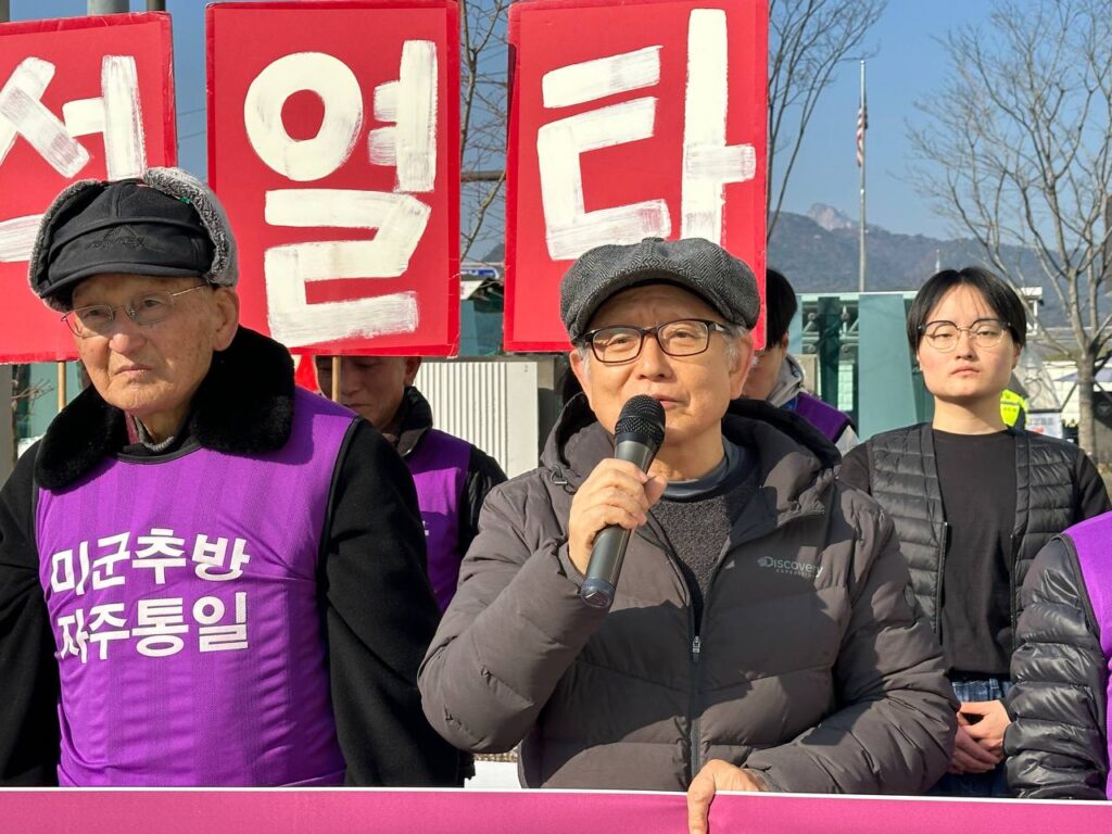 참가자들은 <반민중파쇼광 윤석열 타도하자!>, <북침전쟁책동 윤석열 타도하자!>, <윤석열 타도하고 민중민주 실현하자!>, <동아시아핵전쟁도발 미군 철거하라!> 구호를 힘차게 외쳤다.