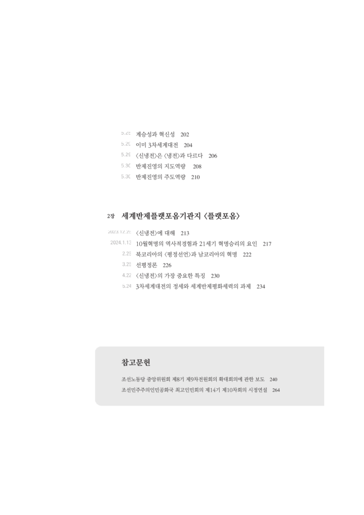 아직은 모두 학문적차원의 <가설>이다. 하지만 인간의 지성은 이<가설>이 맞는지를 이론적으로 검증할수 있는 능력이 있다. 결국 실천으로 확증될것이고 또 그것이 머지않았음을 모두가 안다. 이책은 인터넷정론지 <21세기민족일보>와 세계반제플랫포옴기관지 <플랫포옴>등에 기고된 글들중에서 평정과 관련된것만을 모은것이다. 과학적정세분석과 변혁적전략수립에 도움이 되기를 바란다.