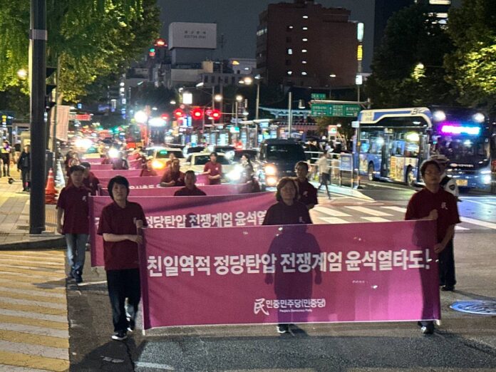 5일 민중민주당(민중당)은 윤석열정부의 정당탄압을 규탄하고 친일역적윤석열의 전쟁계엄음모를 폭로하는 투쟁을 강력히 전개했다.