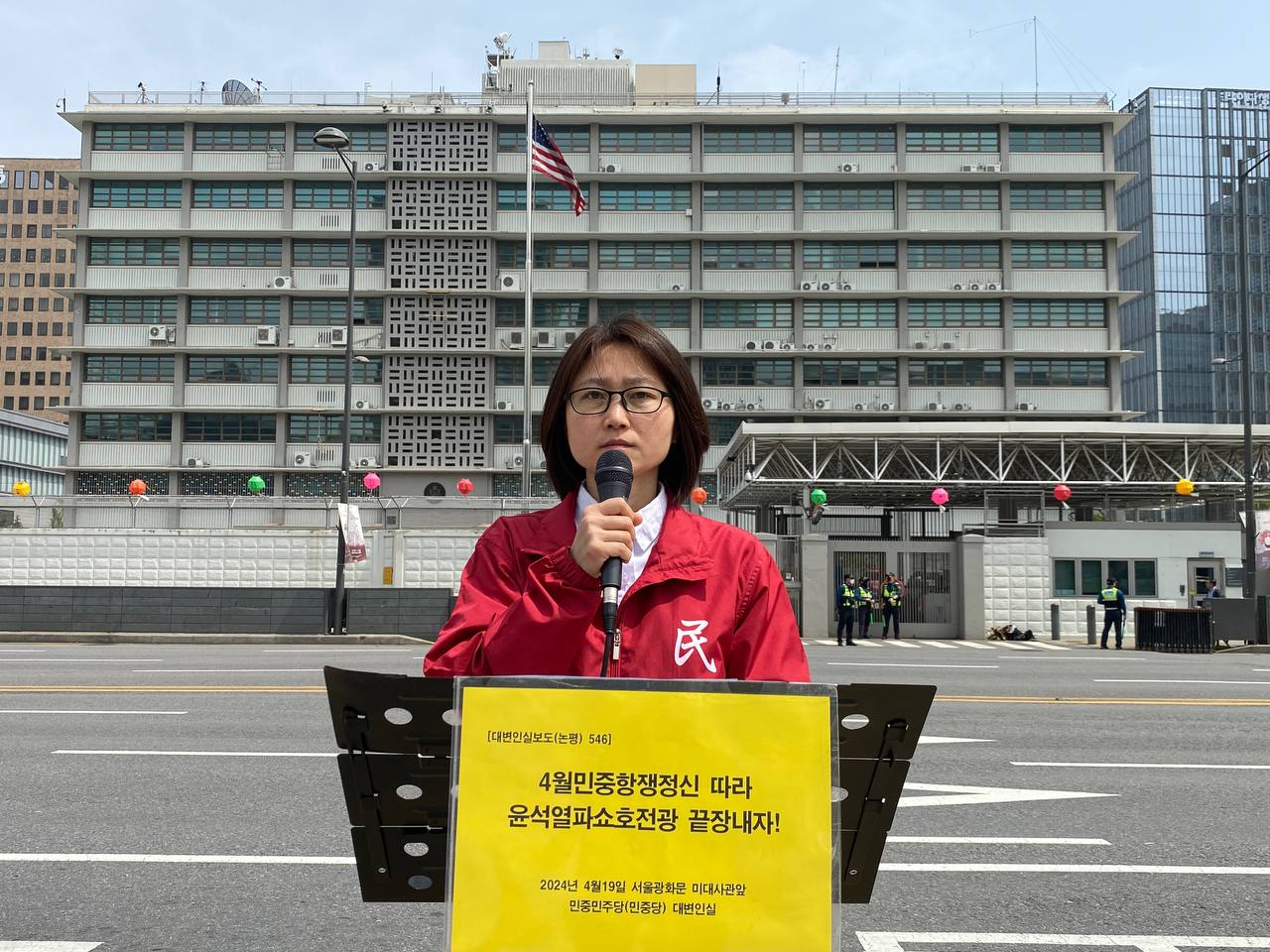 3. <정권심판>을 넘어 윤석열파쇼독재타도로 나아가야 한다. 미제침략세력은 2차세계대전이후 <냉전>을 조작하면서 코리아반도를 그 희생물로 삼았다. 마찬가지로 현재 2022년 시작된 3차세계대전을 본격화하고 <신냉전>을 전면화하기 위해 남코리아를 전쟁터로 전변시키려 날뛰고 있다. <냉전>시기 약소국에서 직접 전쟁을 벌이던 미제침략세력이 현재 <신냉전>시기에는 전쟁꼭두각시를 내세우는 대리전의 교활한 방식으로 침략과 학살을 벌이고 있다. 우크라이나전과 팔레스타인전·중동전을 거쳐 남코리아전과 대만전으로 기어이 동아시아전을 개시하려는 미제침략세력의 손발이자 전쟁대리인이 다름 아닌 윤석열친미호전무리다. 파쇼광란과 전쟁광풍을 막을 수 있는 유일한 방도는 윤석열타도며 이는 오직 항쟁을 통해서만 가능하다. 정의와 자주를 지향하는 우리민중은 머지않아 반윤석열반미항쟁에 총궐기해 윤석열을 끝장내고 미제침략군대를 몰아내며 자주와 평화의 새세상을 앞당길 것이다.
