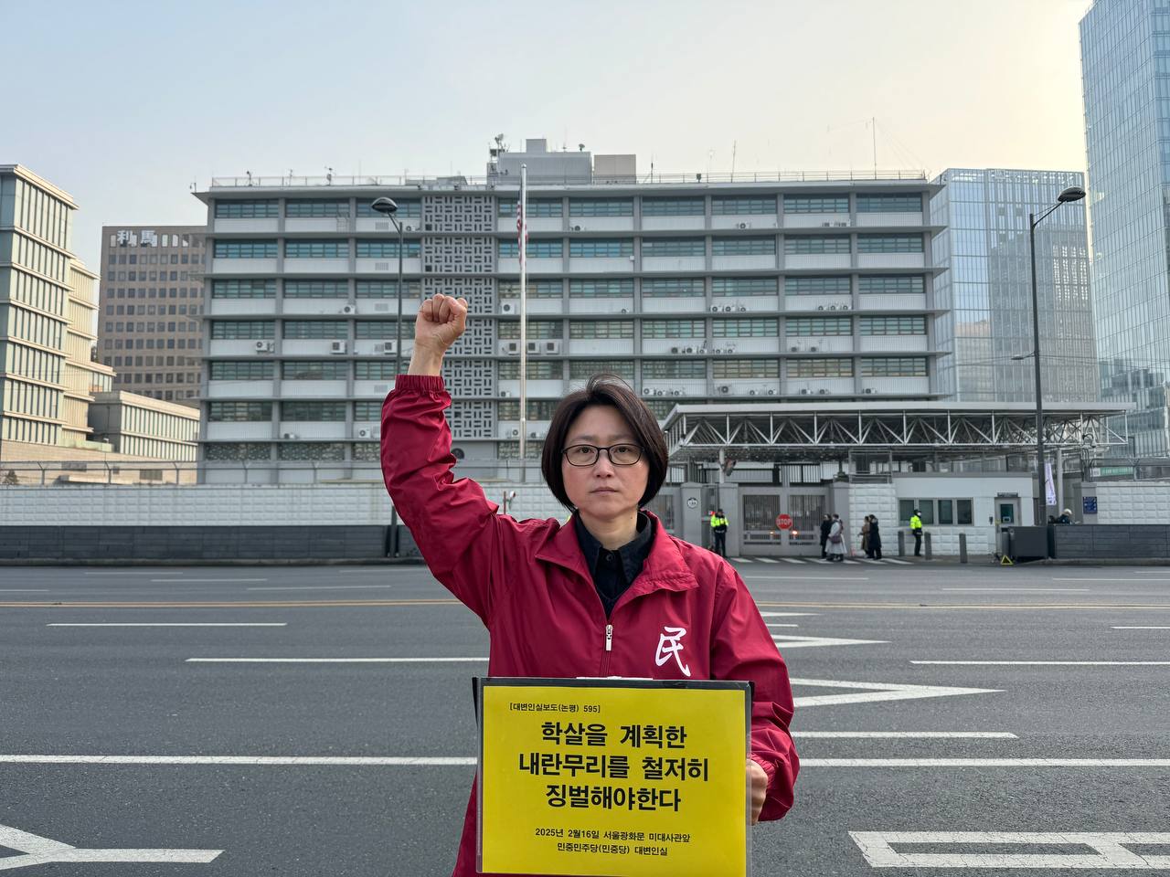 16일 민중민주당(민중당)은 미대사관앞에서 논평 <학살을 계획한 내란무리를 철저히 징벌해야한다>를 발표했다.