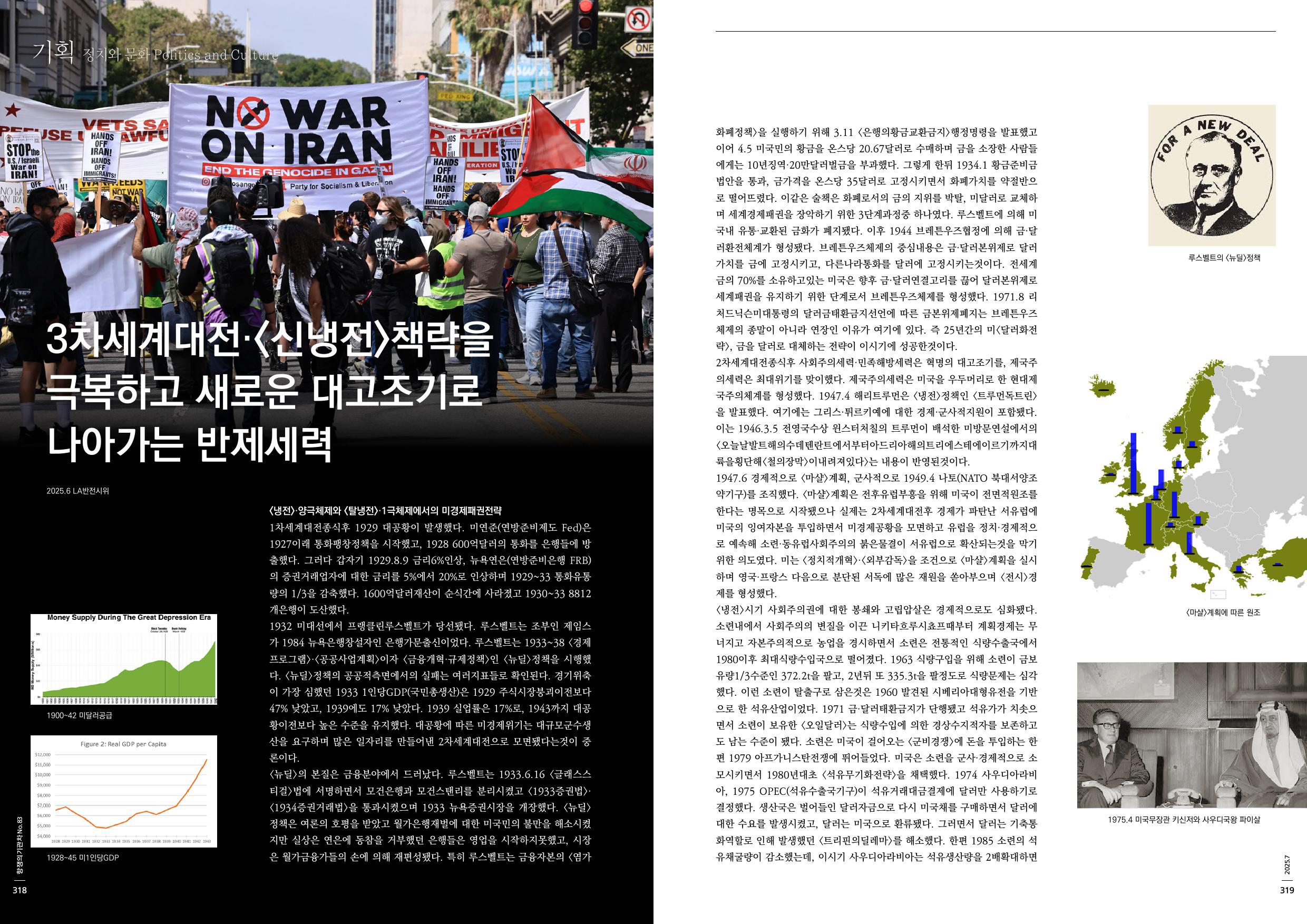 <미우선주의>를 주창하는 트럼프가 제국주의비호전세력으로서 전쟁을 피하는 이유는 분명하다. 2025.5기준 미국가부채는 총36.21조달러다. 부채급증의 주요원인으로 아프가니스탄전쟁·이라크전쟁·2008금융위기·코로나19팬데믹을 꼽을수 있다. 특히 2021 <불안정한상태:9/11이후군사화의대가>보고서에 따르면 미국은 2001~21 해외군사개입·침략전쟁등에 무려 21조달러를 지출했다. 미회계연도기준으로 아프가니스탄전·이라크전·시리아전에 8조달러이상 지출됐는데, 통상적으로 미군사지출은 공식인정된것의 약2배수준으로 분석한다. 즉, 16조달러이상이 지출됐을것으로 보인다. 경제군사화에 의해 미국가부채가 계속 증가하고, 미국민중의 혈세는 전쟁비용과 부채이자로 탕진되며 미국가독점자본, 그가운데 군수자본만 비대해지는 악순환이 있다.