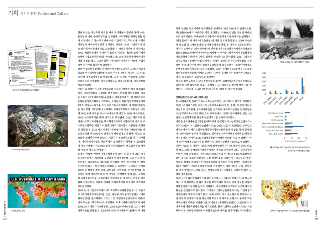 미국의 한연구보고서<군사적간섭항목:1776~2019미군의군사적간섭자료집>에 따르면 해당기간 미국은 세계에서 군사적간섭을 392차 벌였는데, 약절반은 1950이후, 1/4은 <냉전>종식이후 <탈냉전>시기에 있었다.