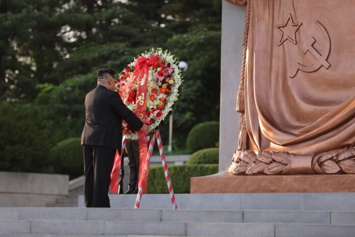조선로동당 총비서이시며 조선민주주의인민공화국 국무위원장이신 경애하는 김정은동지께서 조국해방 80돐에 즈음하여 8월 15일 해방탑을 찾으시였다.