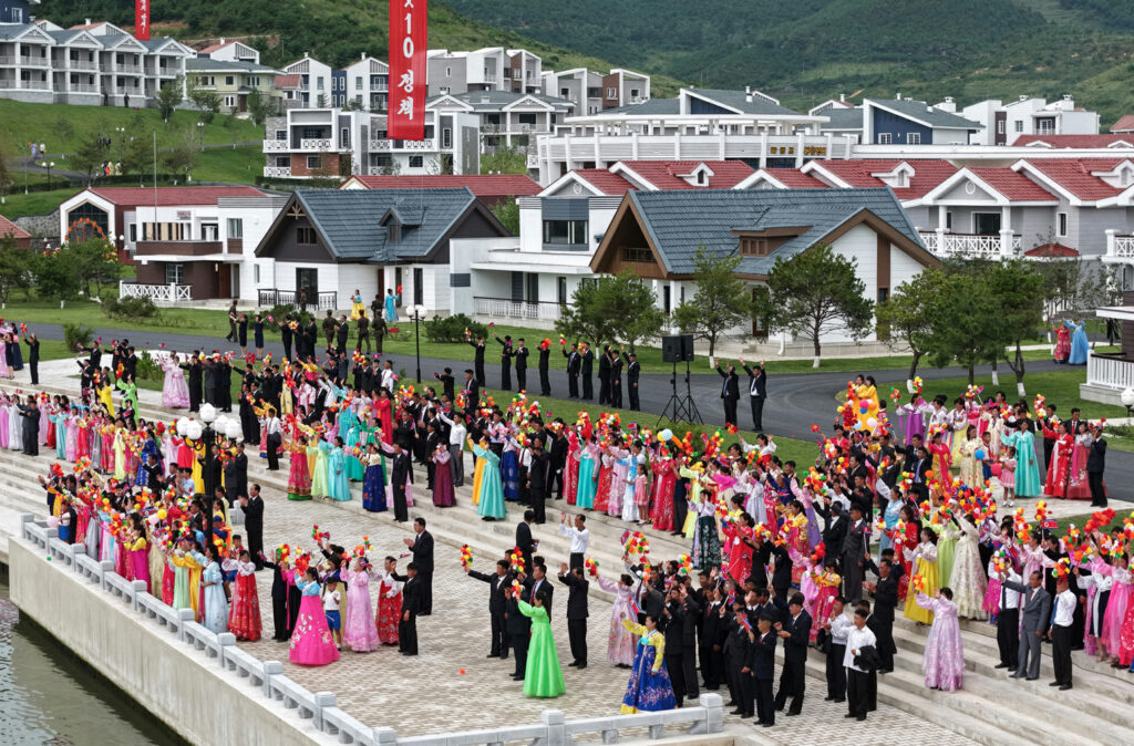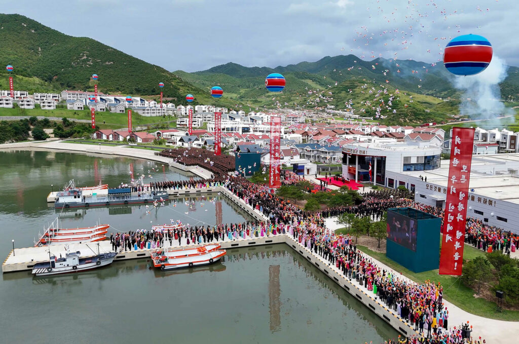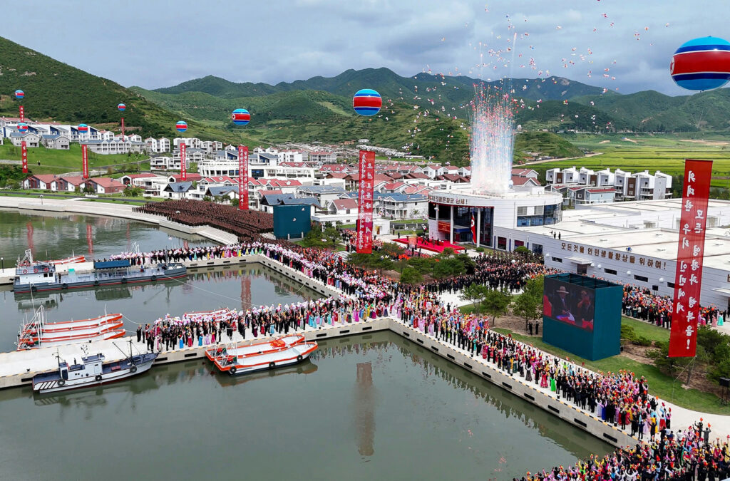 준공식장은 새 생활, 새 문명의 기쁨을 향유하는 락원군주민들의 크나큰 환희와 우리 식의 리상어촌건설로써 인민의 행복의 창조자로서의 명함을 빛내인 군인건설자들의 무한한 긍지로 끓어번지고있었다.