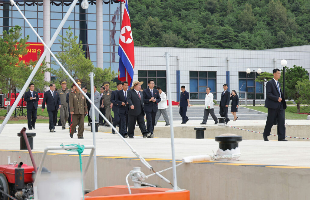 김정은동지께서는 준공식참가자들과 함께 락원군바다가양식사업소를 돌아보시였다.