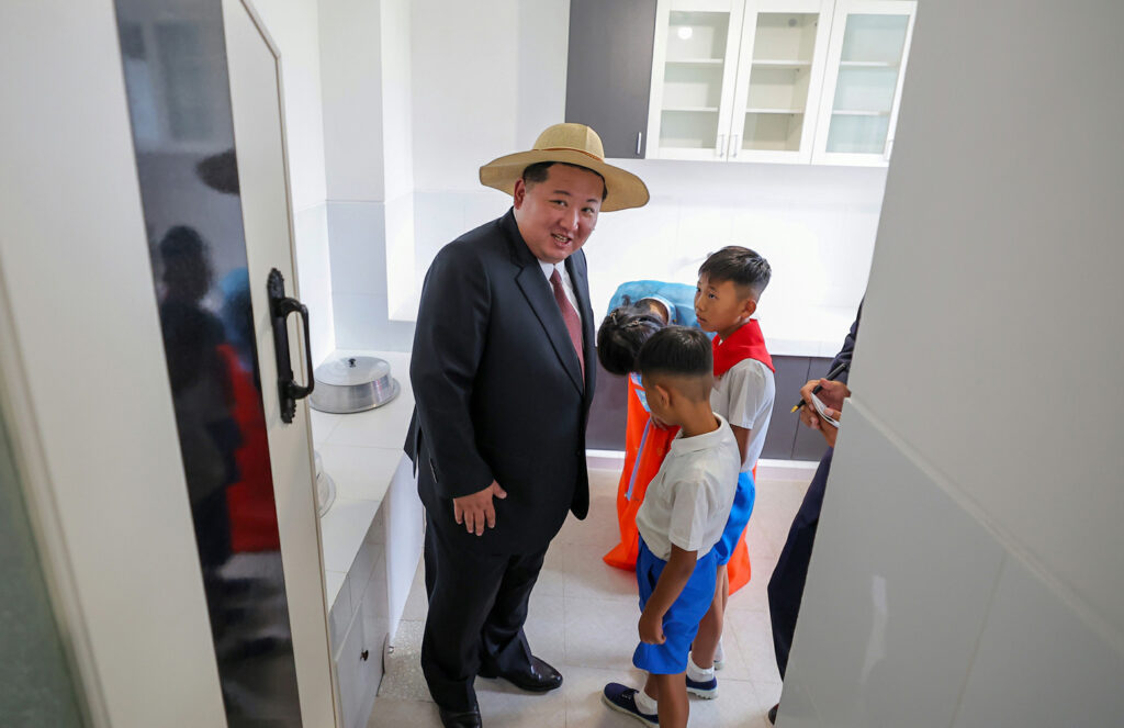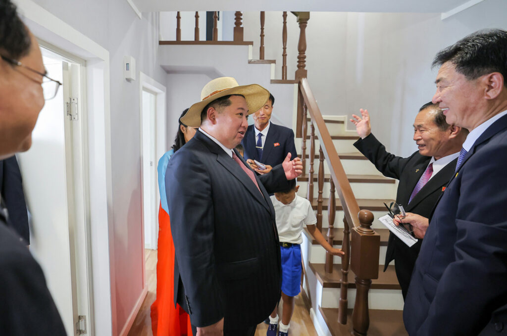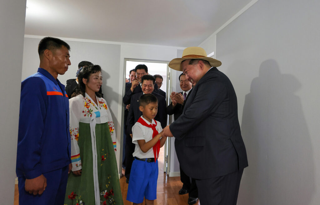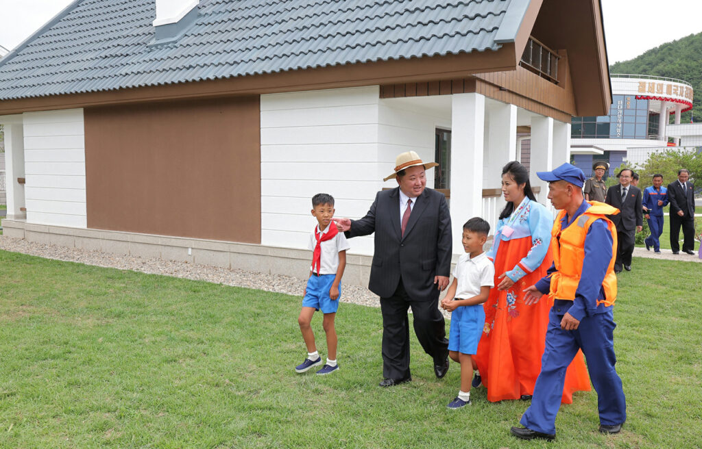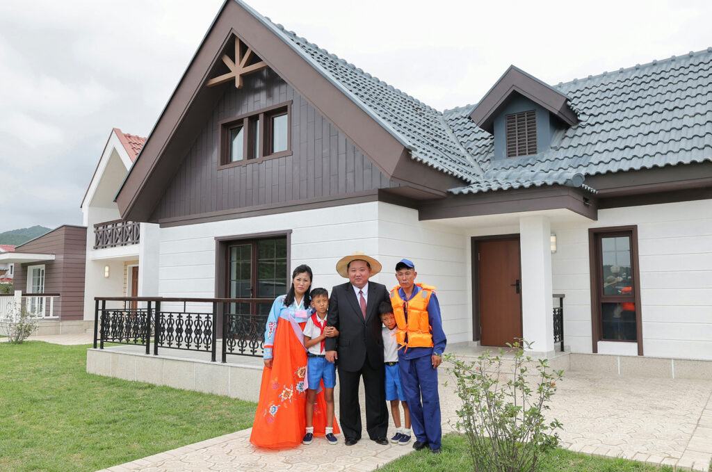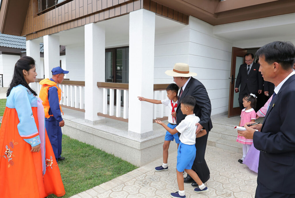 김정은동지께서는 희한한 새 살림집을 받아안고 크나큰 감격과 기쁨에 넘쳐있는 바다가양식사업소 종업원들인 한광선, 조동철, 박충혁세대들의 가정을 찾으시여 육친의 따뜻한 사랑과 정을 부어주시였다.