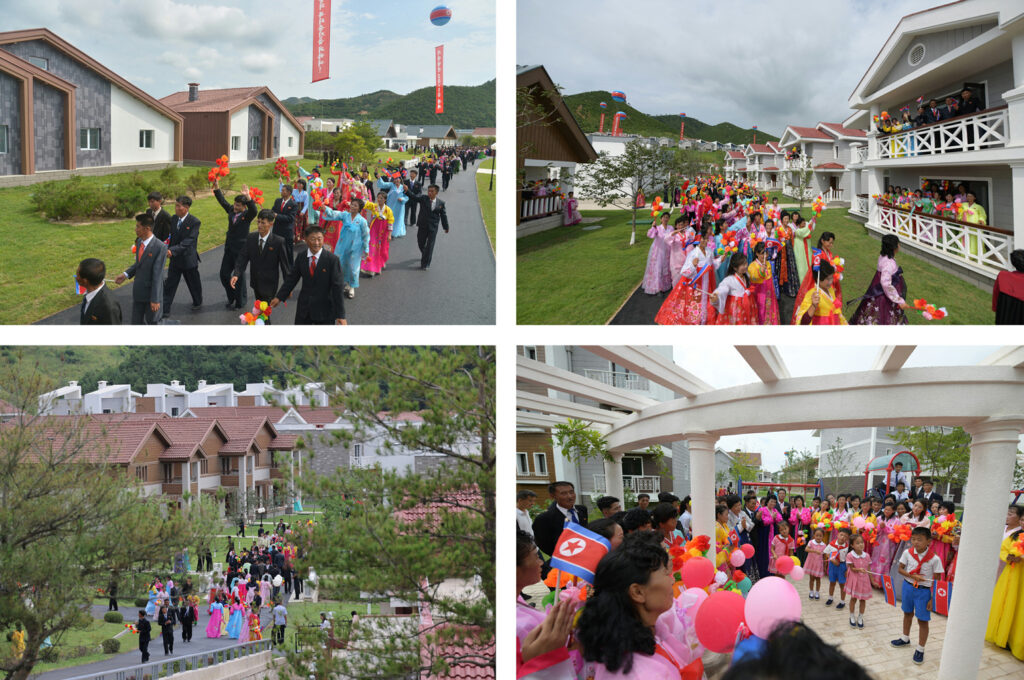 김정은동지께서는 여러 살림방을 돌아보시면서 락원어촌의 당당한 주인이 된 그들을 따뜻이 축하해주시고 군의 경제발전을 이룩하는데 한몫 단단히 하는 위훈의 혁신자가 되여야 한다고 고무해주시며 새 살림집을 배경으로 뜻깊은 기념사진들을 찍어주시였다.