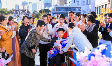 지난 10일 화성구역에서 살고있는 특류영예군인 한금석동무와 김일심동무의 결혼식이 만사람의 축복속에 진행되였다.