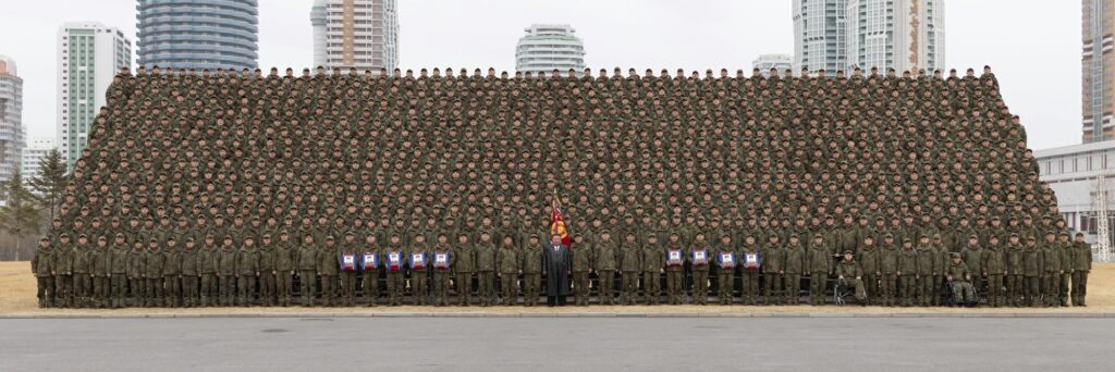 김정은동지께서는 사상으로 불패하고 사상으로 더욱 강해지는 혁명군대의 승리와 발전의 법칙을 해외전장에서 남김없이 실증한 영용한 전투원들이 조선인민군의 존엄과 명예를 우리 세대의 값비싼 군공으로 줄기차게 빛내여가리라는 기대와 확신을 표명하시면서 그들과 건군사에 길이 남을 뜻깊은 기념사진을 찍으시였다.