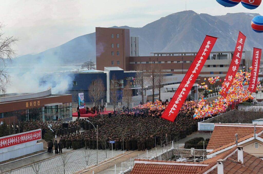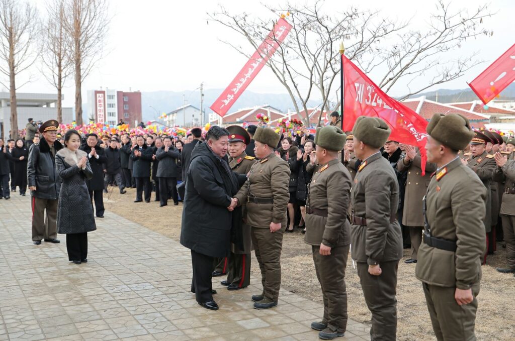 김정은동지께서 준공식장에 도착하시자 전체 참가자들은 인민의 모든 꿈과 리상을 당대의 현실로 꽃피워주시는 온 나라 대가정의 위대하신 어버이를 또다시 자기 고장에 모시게 된 크나큰 감격과 환희에 넘쳐 폭풍같은 <만세!>의 함성을 터쳐올리였다.