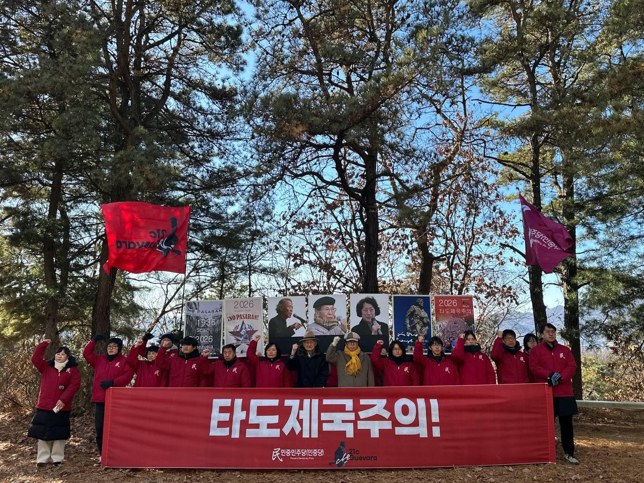 민중민주당학생당원은 <제국주의타도와 친제국주의세력청산의 길에서 청년학생들은 언제나 힘찬 기상으로 전진해왔다. 2025년 단결한 우리민중은 윤석열파면이라는 위대한 승리를 이뤄냈지만 격변하는 국내외 정세는 날이갈수록 고조되고 있다. 모든 전쟁의 화근, 민생파탄의 원흉이 제국주의란 사실은 변함이 없다. 2026년 새해를 맞아 청년학생의 굳센 기상과 신념으로 <타도제국주의>와 민중승리를 위한 투쟁의 한길만을 걸을 것이다>라고 다짐했다.