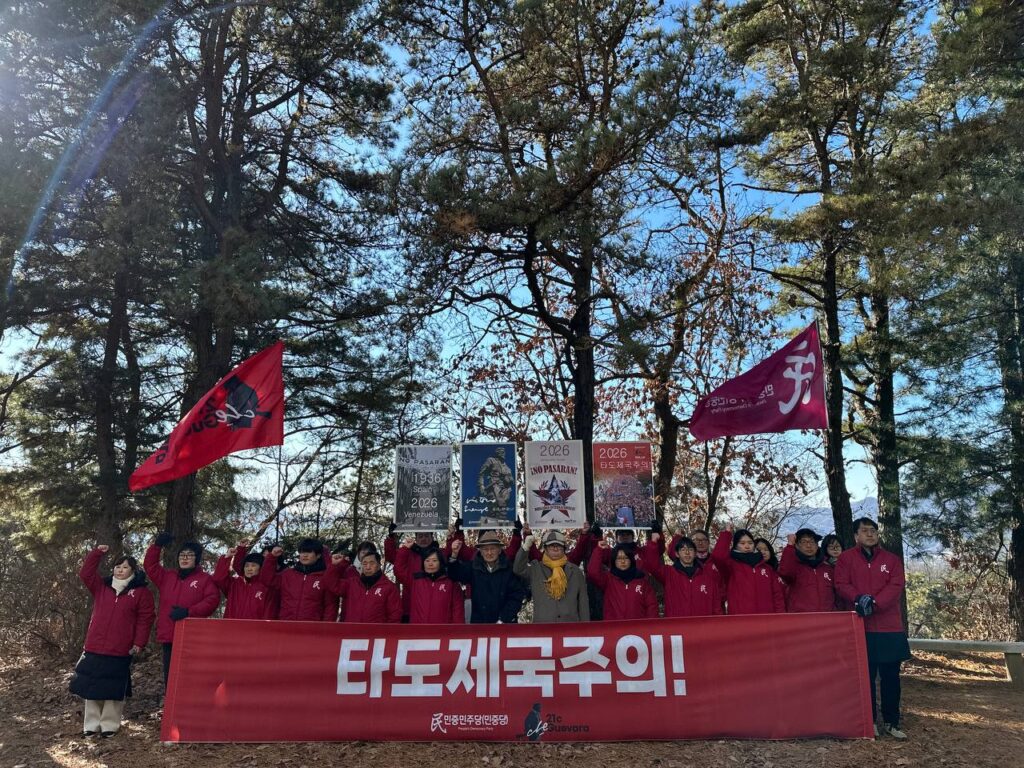 민중민주당노동자당원은 <2026년 <한국>국가부채는 1700조가 넘어가며 최악의 경제를 예고하고 있다. 여기에 곳곳의 시한폭탄으로 <한국>의 위기는 확정이다. 2025년 다시 확인한 노동자민중의 힘으로 세우는 민중정권만이 유일한 돌파구다.>라며 <전세계공통의 적은 제국주의다. 베네수엘라가 <한국>이고 세계라는 국제주의기치로 제국주의를 타도하고 진정한 노동자민중의 삶을 실현하는 새로운 시대를 열자>고 목소리를 높였다.