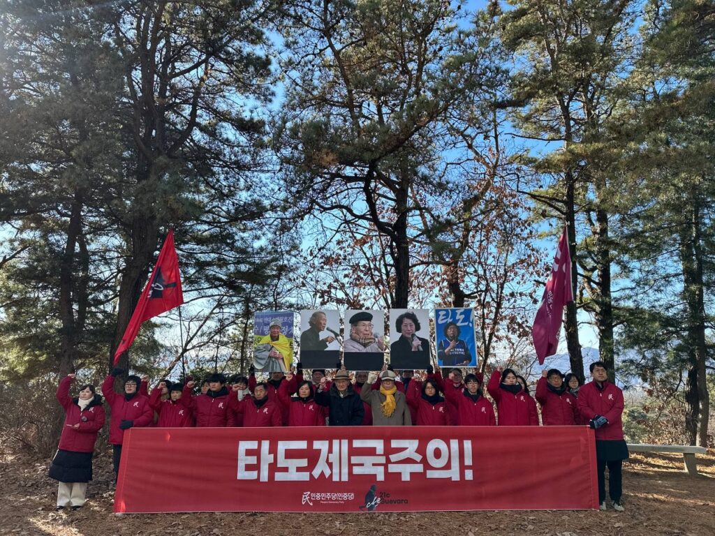 1월1일 21세기체게바라(Defense Brigade)·민중민주당(민중당)은 마석모란공원에서 <타도제국주의!> 신년결의대회를 진행했다.