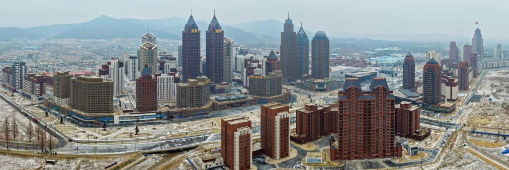 김정은동지의 직접적인 발기와 지도에 의하여 화성지구에는 4단계 1만세대 살림집건설계획과 별도로 고층, 중소층살림집들과 상업 및 봉사시설들을 비롯한 공공건물들이 리상적인 조화를 이룬 또 하나의 건축군이 이채로운 장관을 펼치고있다.