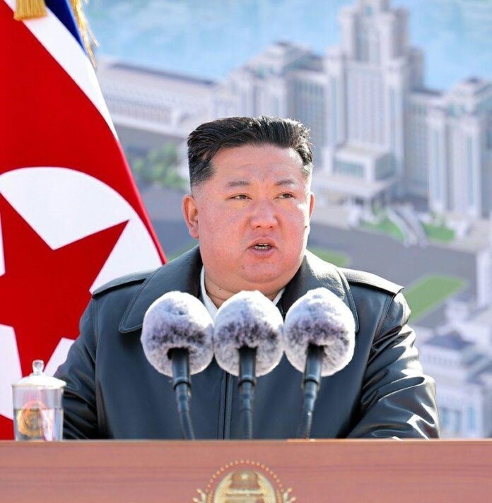 경애하는 김정은동지께서 18일 화성지구 5단계 건설착공식에서 연설을 하시였다.