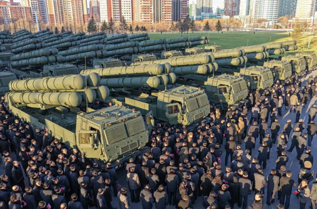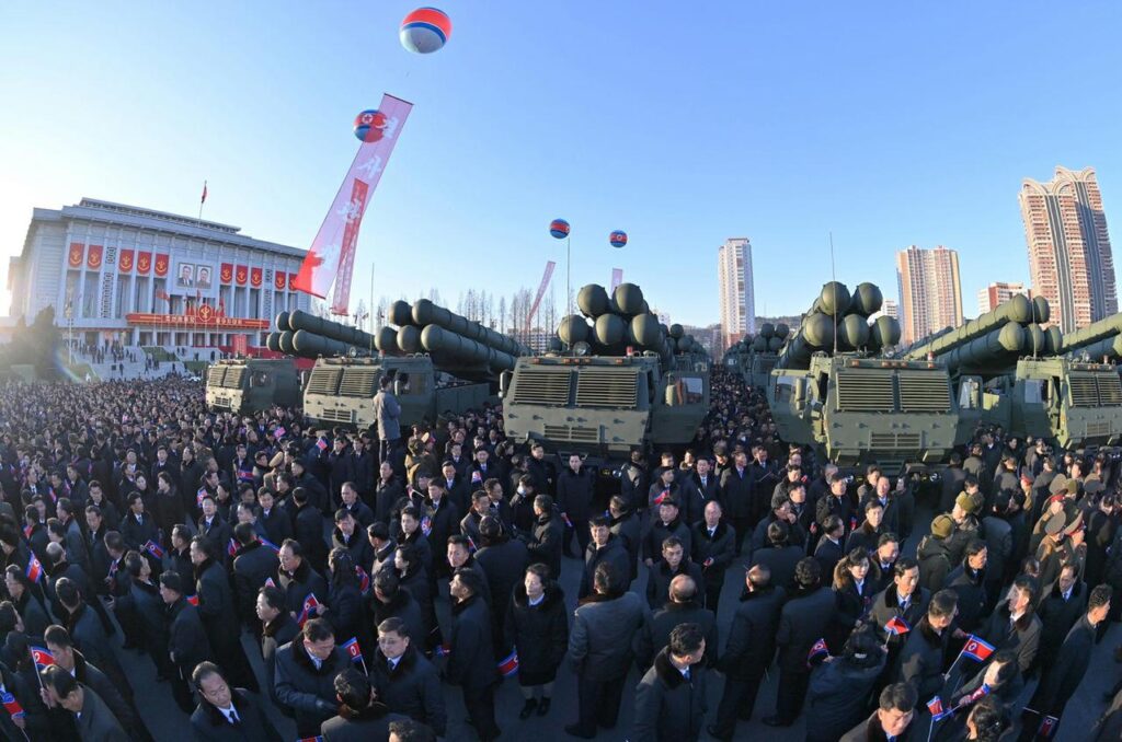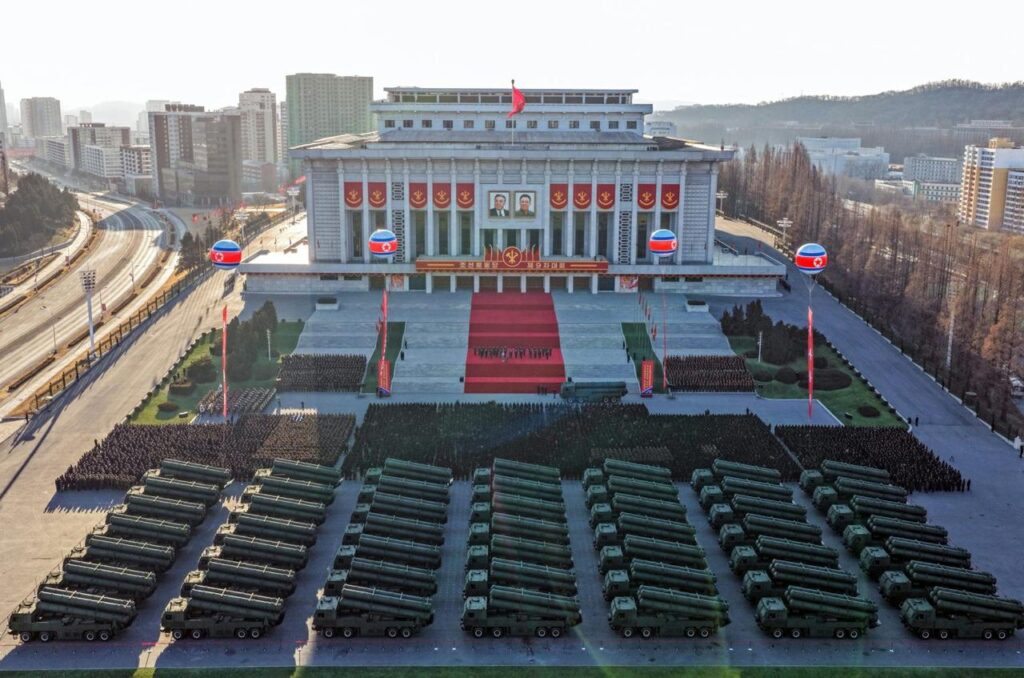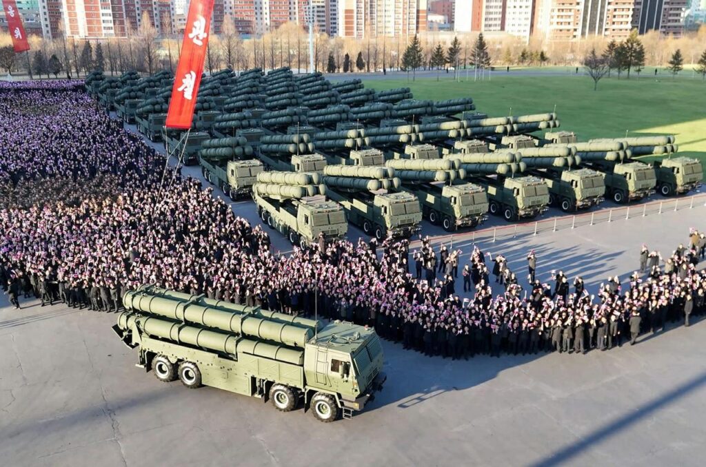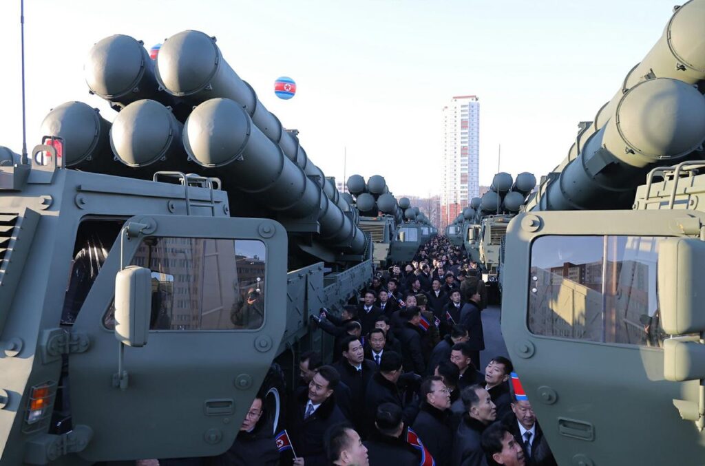 김정은동지께서는 방사포차에 오르시여 몸소 운전을 하시며 영광의 광장에 장엄히 도렬한 절대병기들을 사열하시였다.