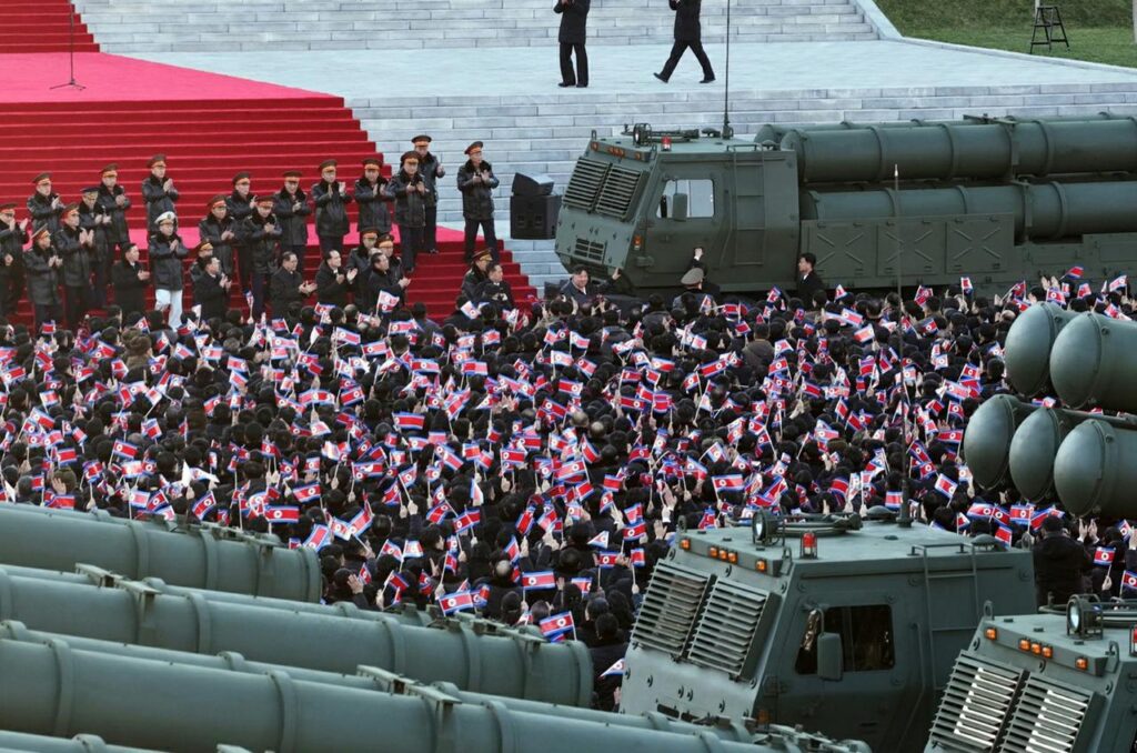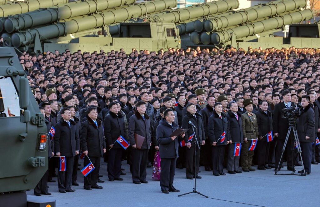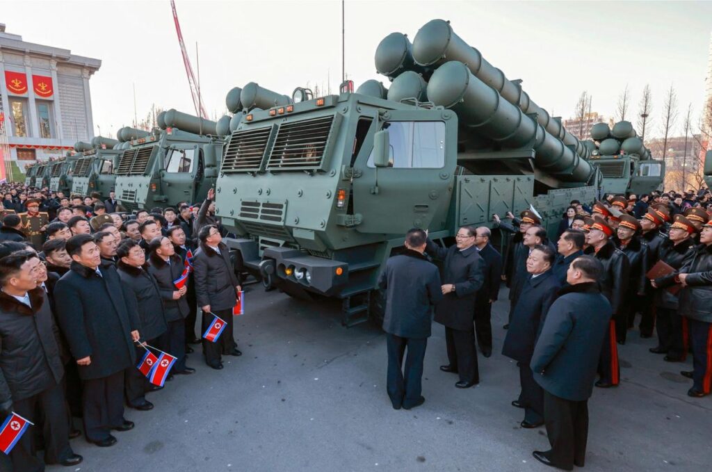 군수로동계급이 조선로동당 제9차대회에 드리는 600mm대구경방사포증정식 성대히 거행