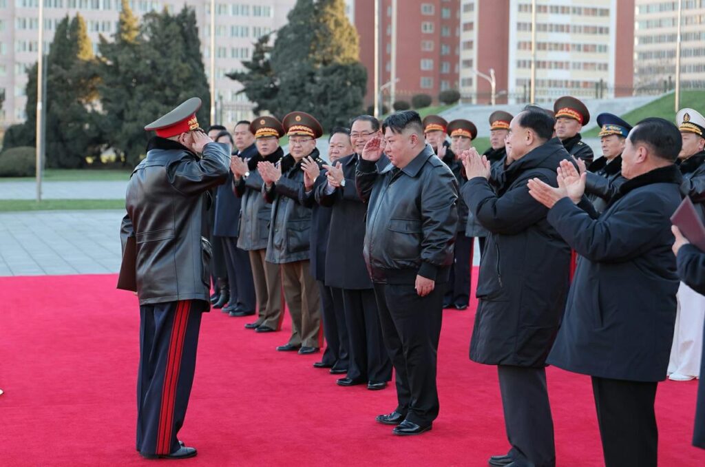 김정은동지께서 증정식장에 나오시자 전체 참가자들은 국가방위력강화의 대업을 진두에서 이끄시며 선견지명의 예지와 출중한 령도력, 강인담대한 배짱으로 우리식 국방발전의 새로운 경지를 개척하시고 우리 국가와 인민의 존위와 안녕을 굳건히 수호해가시는 백전백승의 강철의 령장을 우러러 최대의 경의와 영광을 삼가 드리였다.