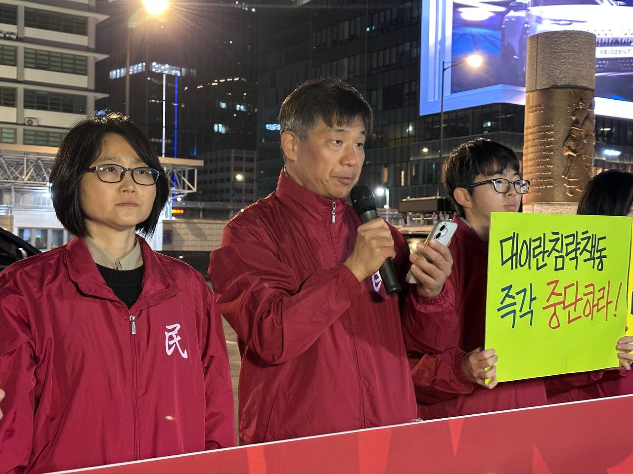 28일 민중민주당(민중당)은 미대사관앞에서 <이란침공강력규탄! 서아시아전도발제국주의타도!> 2차긴급정당연설회를 진행했다.