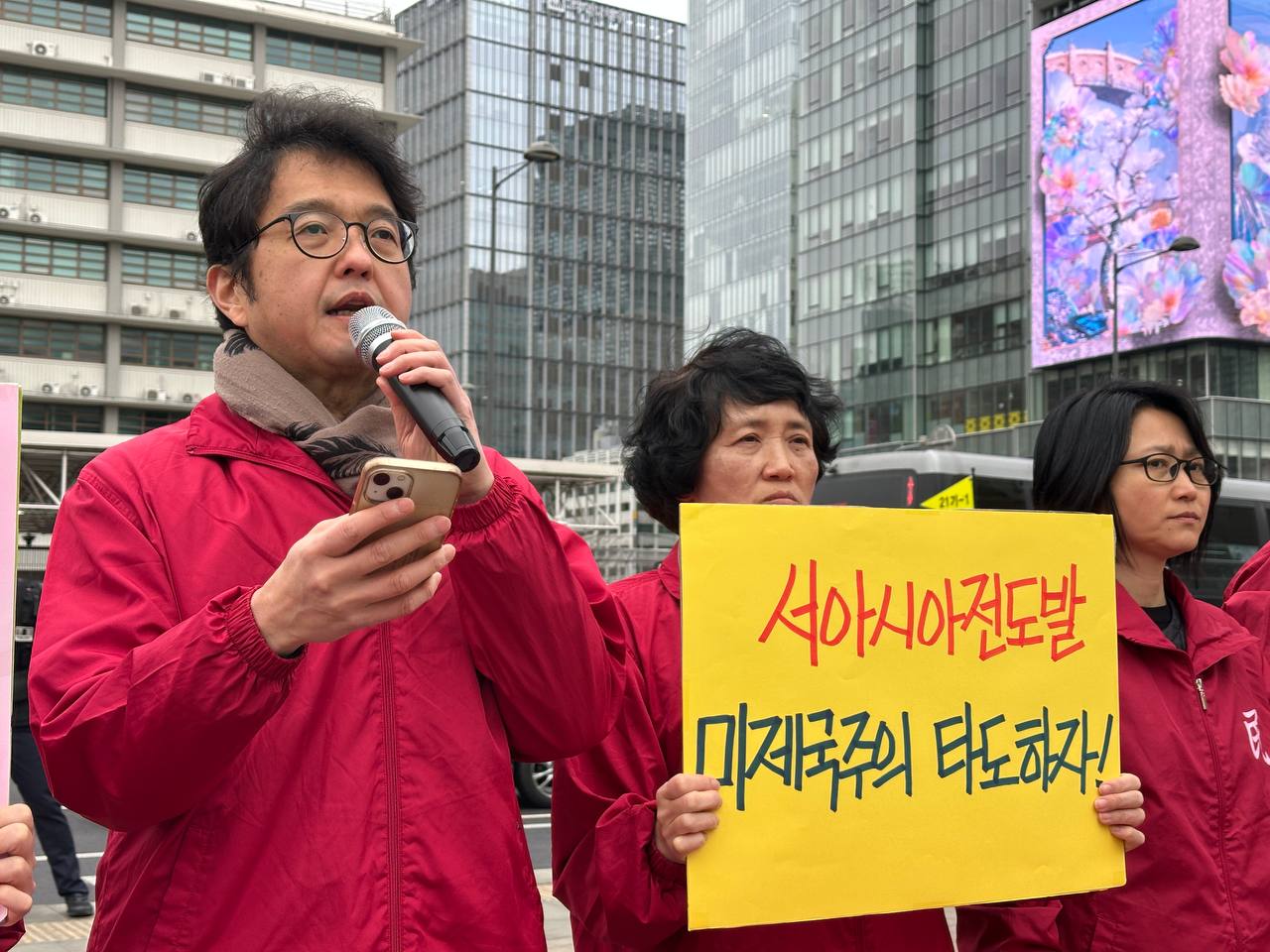 민중민주당서울시당위원장은 <우리는 지금 맹목적인 패권주의가 빚어낸 끔찍한 비극의 한가운데 서있다. 우리는 이번 이란전의 구조적 진실을 직시해야 한다. 현재 서아시아의 위기는 단순한 종교적·민족적 갈등이 아니다. 그것은 미국의 극단적인 친이스라엘정책과 군산복합체의 탐욕, 그리고 제국주의의 패권이 만들어낸 필연적 결과다. 이번 대이란침략은 쇠락해가는 정치경제적위기를 타개하고 억지로 신냉전체제를 조작하여 세계패권을 연장하려는 미 제국주의의 단말마적 발악이다. 시오니즘은 이러한 제국주의적 팽창을 서아시아에서 대리수행하는 가장 폭력적인 도구일 뿐이다.>고 강력히 규탄했다.