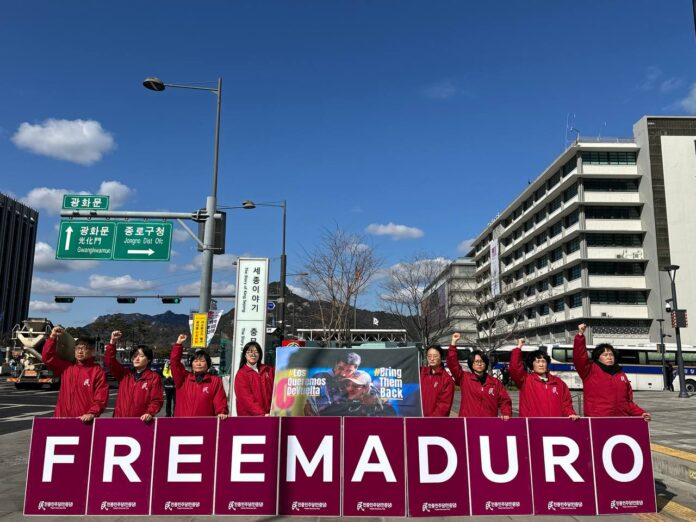 또 <서반구에서 베네수엘라에 이어 쿠바를 전쟁터로 만든 것도 모자라, 동반구에서 이란전을 일으킨 미국은 그야말로 최악의 전쟁국, 집단학살가해국이다. 침략전쟁의 화근이며 민중의 생존과 발전을 파괴하는 원흉 제국주의미국을 타도해야 한다. 우리는 반제민중국 베네수엘라와 볼리바르혁명을 지지하며, 마두로대통령과 플로레스영부인의 석방을 강력히 촉구한다. 반제투쟁국제연대로 미제국주의를 타도하고, 민중이 주인 되는 새로운 세상을 우리의 손으로 앞당겨 실현하자.>고 목소리를 높였다.