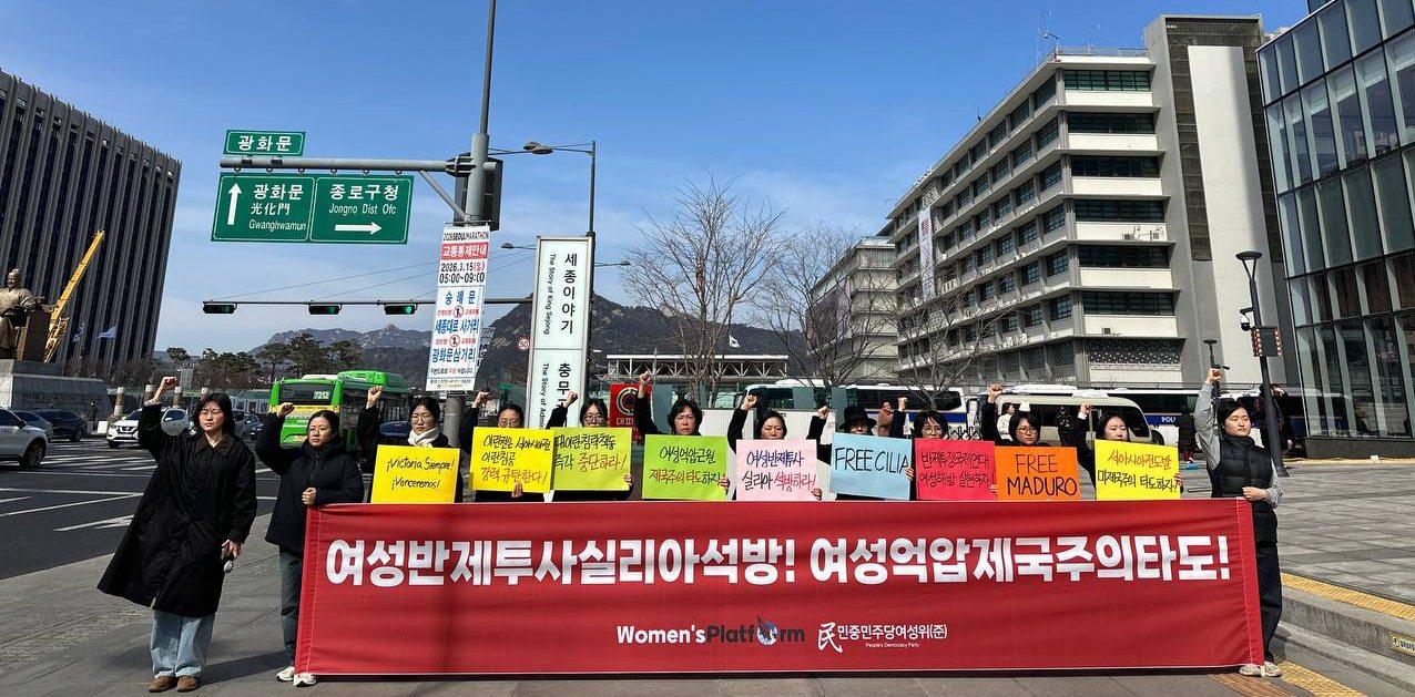 민중민주당여성위원회(준)는 <베네수엘라 여성반제투사 플로레스는 차베스의 사면을 이끌어낸 실력가였고, 베네수엘라 최초 여성국회의장이었으며 꼬무나를 통해 여성노동자와 주민들의 교육과 조직에 힘쓴 베네수엘라혁명의 어머니로 불리는, 마두로대통령은 <첫번째전사>로 불렀던 반미반제투쟁에 앞장선 반제투사다. 우리는 불법적으로 납치·체포된 베네수엘라 마두로대통령과 실리아플로레스의 즉각석방을 요구하며, 플로레스에 늑골골절과 안면부상을 입힌 폭력적·파쇼적 체포만행을 규탄한다. 또한 폭력에 저항하며 자신과 베네수엘라의 존엄을 위해 미제국주의에 맞서싸우고 있는 동지로 그 투쟁을 지지하며 연대할 것이다.>고 발언했다.