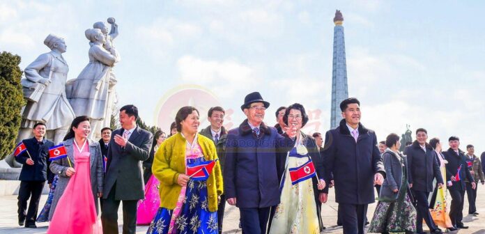 봄기운이 완연한 내 나라의 맑고 푸른 하늘가에 공화국기 펄펄 휘날리고 가는 곳마다 크나큰 환희와 격정으로 설레이고있다.