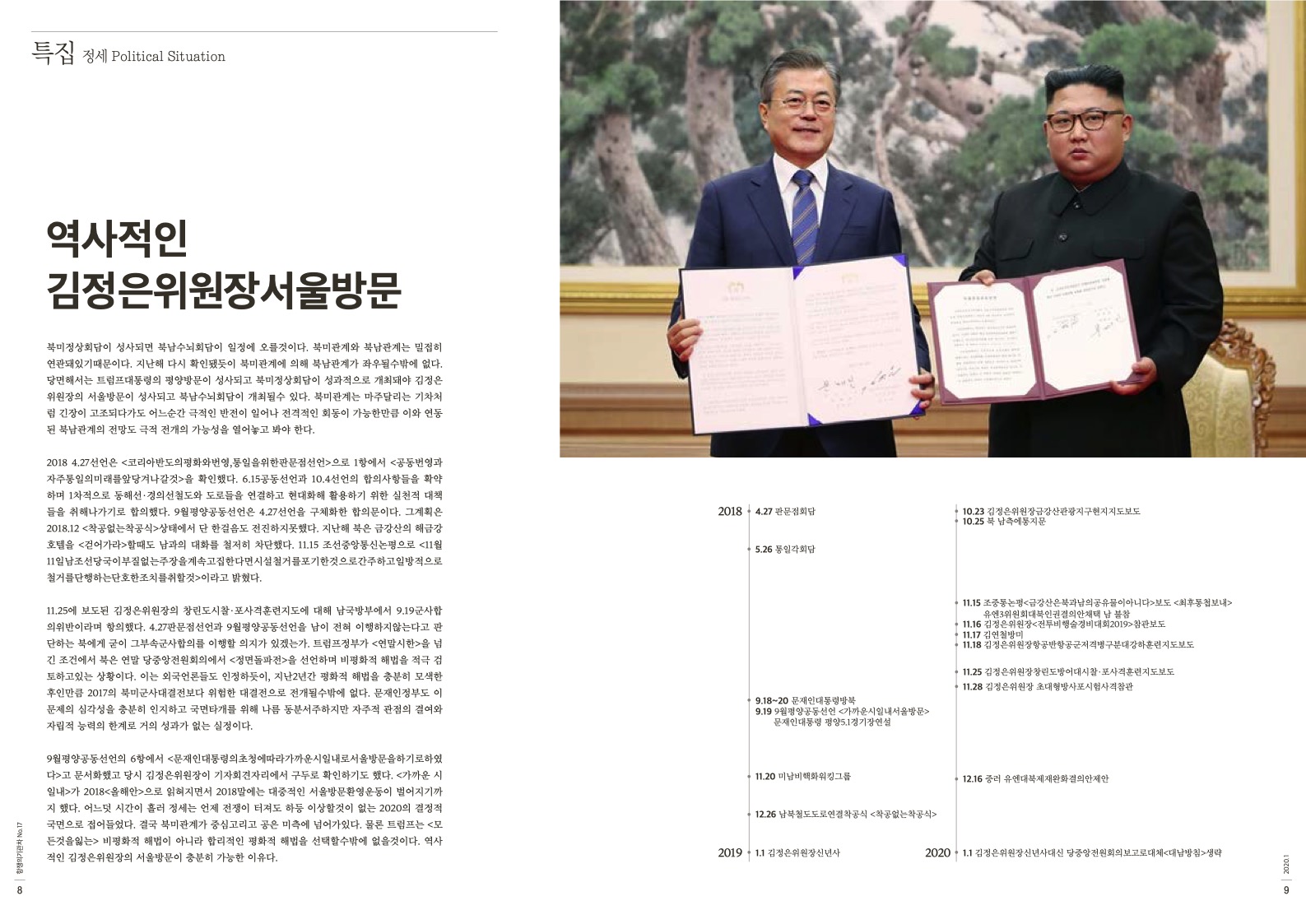 9월평양공동선언의 6항에서 <문재인대통령의초청에따라가까운시일내로서울방문을하기로하였다>고 문서화했고 당시 김정은위원장이 기자회견자리에서 구두로 확인하기도 했다. <가까운 시일내>가 2018<올해안>으로 읽혀지면서 2018말에는 대중적인 서울방문환영운동이 벌어지기까지 했다. 어느덧 시간이 흘러 정세는 언제 전쟁이 터져도 하등 이상할것이 없는 2020의 결정적 국면으로 접어들었다. 결국 북미관계가 중심고리고 공은 미측에 넘어가있다. 물론 트럼프는 <모든것을잃는> 비평화적 해법이 아니라 합리적인 평화적 해법을 선택할수밖에 없을것이다. 역사적인 김정은위원장의 서울방문이 충분히 가능한 이유다.