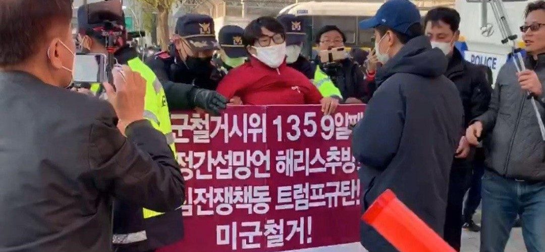 민중민주당은 8일 10시·17시·19시·21시·23시 5차례에 걸쳐 <내정간섭망언 해리스추방! 북침전쟁책동 트럼프규탄! 미군철거!> 1359일째 미대사관앞평화시위를 진행했다.