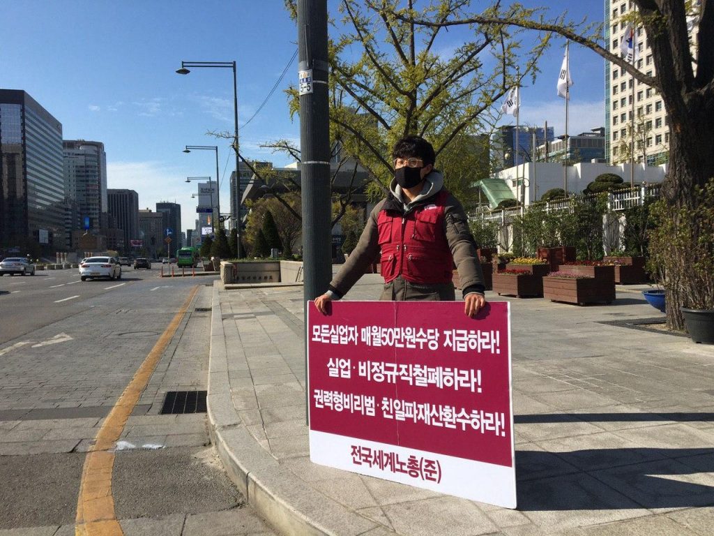 Home일반・기획・특집민생・사회전총 〈모든실업자에게 매월50만원수당지급!〉 … 정부서울청사앞 일인시위8일째 민생・사회 전총 〈모든실업자에게 매월50만원수당지급!〉 … 정부서울청사앞 일인시위8일째 2020-04-13 전국세계노총준비위원회는 13일 서울정부종합청사앞에서 <모든실업자매월50만원수당지급!><실업·비정규직철폐!><권력형비리범·친일파재산환수!> 일인시위를 8일째 진행했다. Previous article[노동신문] 백승의 진로를 밝힌 기념비적문헌Next article북 최고인민회의 제14기 제3차회의진행 관련기사 〈미국·이스라엘의 이란침략사태에 관한 각계공동시국선언〉 발표기자회견 개최 2026-03-18 〈국가보안법구속자석방과 수사·기소중단 국가보안법 철폐〉 석권호석방대책위·이정훈석방대책위 청와대앞 기자회견 2026-03-17 민중민주당반미반전특위, 〈미국의 호르무즈해협 파병요구규탄 및 파병반대〉 긴급기자회견 참가 2026-03-16 최신기사 이란 미·이스라엘에 대해 미사용무기배치 예정 국제 2026-03-19 이란외무장관, 휴전이 아닌 종전을 원한다 국제 2026-03-19 이란, 이스라엘4개도시와 서아시아미군기지 공습 최신기사 2026-03-19 이란, 이스라엘에 의한 고위직 사망 확인 국제 2026-03-19 사설 제국주의미국의 총알받이가 되기를 거부해야한다 2026-03-16 대미투자는 제국주의난파선에 올라타는 것 2026-03-14 위험한 시기에 벌이는 무모한 침략전쟁연습 2026-03-09 3차세계대전의 본격화를 불러오는 대이란전면전도발 2026-03-01 글 〈왝더독〉 영화와 현실 2026-03-18 발악하는 트럼프, 지상군 투입하나 2026-03-16 불 좋아하다가 그불에 타죽는다 2026-03-12 비호전에서 호전을 넘어 호전광으로 2026-03-10 검색 - Advertisement -