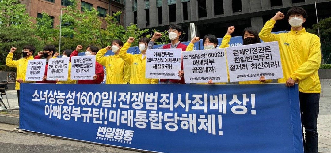 16일 반일행동(반아베반일청년학생공동행동)이 소녀상농성1600일을 맞아 <전쟁범죄사죄배상! 아베정부규탄! 미래통합당해체!> 기자회견을 진행했다.